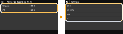 Pilih sama ada mahu menukar antara pencetakan di atas kertas bersaiz A4 dan Surat jika satu daripada saiz kertas dimuatkan tetapi yang lain tidak. Apabila anda memilih <Aktif>, jika anda menentukan kertas bersaiz A4 untuk dicetak daripada komputer tetapi kertas bersaiz A4 tidak dimuatkan dalam mesin, ia akan mencetak dokumen anda di atas kertas bersaiz Surat.