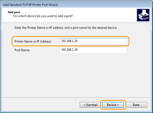 [Port Name] (Nama port) dimasukkan secara automatik. Jika perlu, anda boleh mengubahnya.
