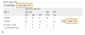 카운트를 0으로 되돌리려면 [부문 ID] 아래의 해당 텍스트 링크를 클릭하고 [카운트 삭제] /b_key_arrow_right.gif) [확인]을 클릭합니다. 모든 부서 ID의 카운트를 0으로 되돌리려면 [모든 카운트 삭제] /b_key_arrow_right.gif) [확인]을 클릭합니다.