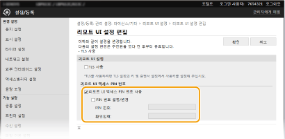 <관리 설정>이 초기화 되면리모트 UI 액세스 PIN도 함께 초기화됩니다. 초기화된 후에 PIN을 리셋합니다. <메뉴 초기화>