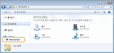 [네트워크] 또는 [네트워크 환경]에서 프린터 서버를 선택합니다.