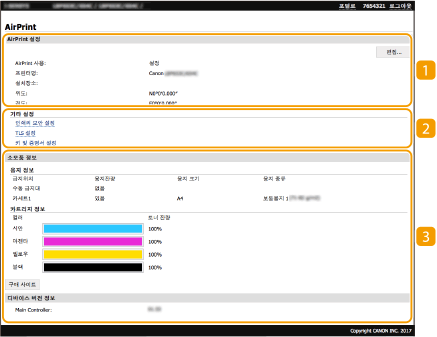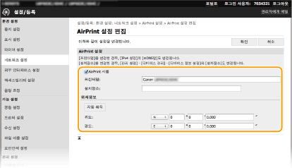 AirPrint로 인쇄를 실행할지 여부를 지정할 수 있습니다. 출고 시 기본 설정은 <설정>입니다.