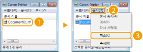 응용 프로그램에서 취소일부 응용 프로그램에서 아래와 같은 화면이 나타납니다. [취소]를 클릭하여 인쇄를 취소할 수 있습니다.