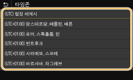 현재 날짜와 시간을 설정하기 전에 <타임존>를 설정합니다. <타임존> 설정이 이후에 변경되면 현재 날짜와 시간도 그에 따라 변경됩니다.