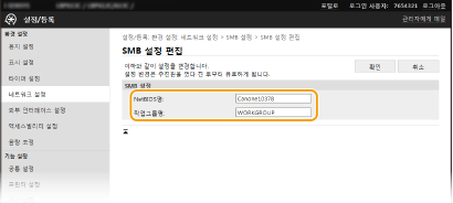 SMB(Server Message Block)는 파일과 프린터 등의 리소스를 네트워크에 연결된 다수의 장치와 공유하기 위한 프로토콜입니다. 본 기기를 SMB 네트워크의 공유 프린터로 구성하려면 이 프로토콜이 필요합니다. 네트워크에 따라 NetBIOS 이름과 작업그룹명을 설정해야 할 수도 있습니다.