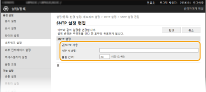 NTP/SNTP 서버와의 통신 테스트[SNTP 설정]에서 [설정/등록]