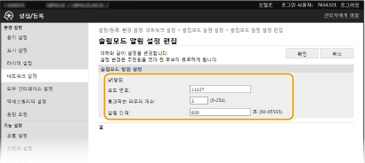 장치 관리 소프트웨어에 기기의 전원 상태를 알리려면 확인란을 선택합니다. [알림]이 선택된 경우 기기가 슬립 모드에 있는 동안 불필요한 통신을 피하고 총 소비 전력을 줄일 수 있습니다. [포트 번호]
