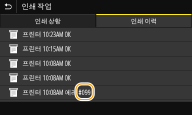 인쇄가 제대로 수행되지 않거나 I-팩스를 수신할 수 없는 경우와 같은 오류가 발생할 경우 해당 오류 코드가 작업 로그 화면에 세 자리 숫자로 표시됩니다. 다음 사항을 확인하여 각 오류 코드의 원인과 해결 방법을 찾으십시오. 작업 로그 화면에 대한 자세한 내용은