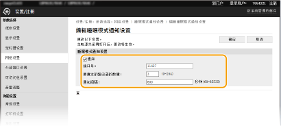 选中此复选框可将本机的电源状态通知给设备管理软件。当选择 [通知] 时,可以使本机在睡眠模式期间避免不必要的通信,并降低总耗电量。 [端口号]