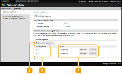 Mostra o nasconde il pulsante sulla pagina principale. Se si desidera eliminare il pulsante, nasconderlo e fare clic su [Cancella].
