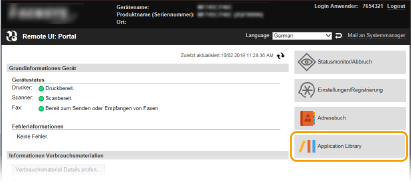 Klicken Sie auf der Portalseite auf [Application Library] (Anwendungsbibliothek).