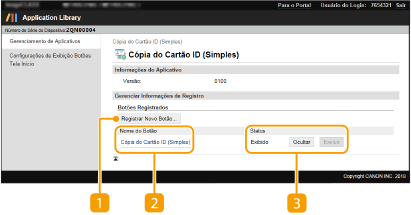 Exibe uma lista de botões registrados. Ao clicar no link de um nome de botão na lista [Nome do Botão] a página [Detalhes do Botão] é aberta, onde é possível alterar ou duplicar as configurações do botão correspondente.