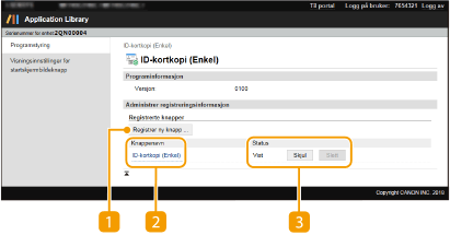 Åpner siden [Registrer ny knapp]. På denne siden kan du angi antall kopier, typen original, og knappenavn som skal vises på Hjem-skjermen.