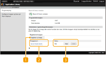 Åpner siden [Registrer ny knapp]. På denne siden kan du angi mottaker, skanneformat, og hva knappen som vises på Hjem-skjermen osv. skal hete.