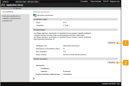 Avaa [Muokkaa perusasetuksia] ‑sivun. Tällä sivulla voit muuttaa painikkeen nimen, tehdä asetuksen, joka saa aloitusnäytön vaihtumaan automaattisesti dianäytöksi, ja asettaa kunkin dian näyttöajan.