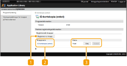 Visar en lista med registrerade knappar. Klicka på länken med knappens namn i listan [Knappnamn] för att öppna sidan [Knappdetaljer] där du kan ändra eller kopiera inställningarna för knappen.