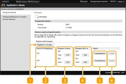 Öppnar sidan [Registrera ny knapp]. Använd den här sidan när du anger inställningar för den länkade molntjänsten, t.ex. namnen på knapparna som visas på Hem-skärmen.