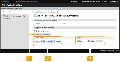 Megjeleníti a bejegyzett gombok listáját. A [Gomb neve] listában szereplő valamely gomb nevére mutató hivatkozásra kattintva megjelenik a [Gombra vonatkozó adatok] oldal, ahol módosíthatja az adott gomb beállításait, vagy másodpéldányt készíthet róluk.