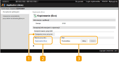 Służy do wyświetlania listy zarejestrowanych przycisków. Kliknięcie łącza nazwy przycisku na liście [Nazwa przycisku] powoduje otwarcie strony [Szczegóły przycisku], która umożliwia zmianę lub powielenie ustawień odpowiadającego przycisku.