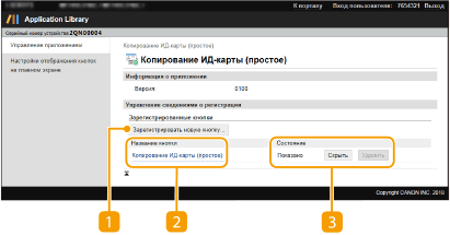 Отображает список зарегистрированных кнопок. Если щелкнуть ссылку имени кнопки в списке [Название кнопки], откроется страница [Сведения о кнопке], на которой можно изменить или дублировать настройки соответствующей кнопки.