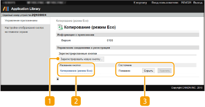 Отображает или скрывает кнопку на главном экране. Если требуется удалить кнопку, сначала скройте ее, а затем щелкните [Удалить].