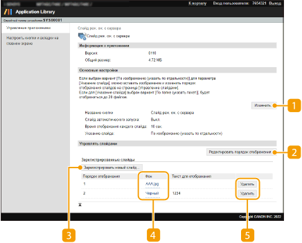 Открывает страницу [Изменить основные настройки]. На этой странице можно изменить имя кнопки, настроить автоматическое переключение главного экрана в режим слайдов и задать время отображения каждого слайда.