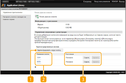 Это приложение доступно только на моделях аппарата, в которых имеется функция факса. Для того чтобы использовать это приложение, необходимо задать значение [Вкл.] для параметров [Использ. блокировку памяти] и [Использ. предв. просм. факса]. |
