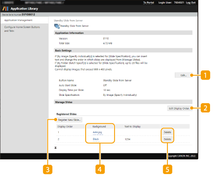 Deschide pagina [Edit Basic Settings]. Pe această pagină puteți modifica denumirea butonului, puteți efectua o setare astfel încât afișarea ecranului Acasă să treacă automat la afișarea unui diapozitiv și puteți seta durata de afișare a fiecărui diapozitiv.