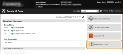 Na stránke Portál kliknite na [Application Library] (Knižnica aplikácií).