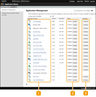 Stránka [Application Management] vám umožňuje zapnúť alebo vypnúť každú aplikáciu a zmeniť nastavenia každej aplikácie.