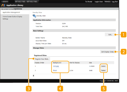 Slúži na otvorenie stránky [Edit Basic Settings]. Na tejto stránke môžete zmeniť názov tlačidla, vykonať nastavenia, aby sa zobrazenie na domovskej obrazovke automaticky preplo na zobrazenie snímky, a nastaviť čas zobrazenia každej snímky.