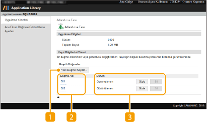 Kayıtlı düğmelerin listesini görüntüler. [Düğme Adı] listesinde bir düğme adının bağlantısına tıklanınca, o düğmenin ayarlarını değiştirebileceğiniz veya kopyalayabileceğiniz [Düğme Ayrıntıları] sayfası açılır.