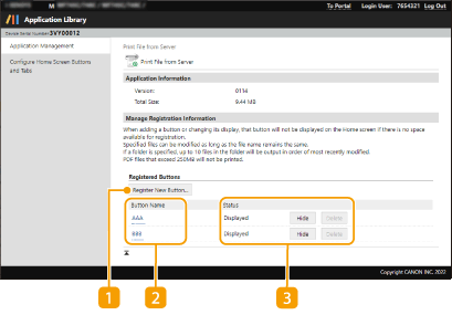 פותח את דף ה-[Register New Button]. בדף זה, ניתן להגדיר את היעד, את שם הקובץ ואת שם הלחצן שיוצג במסך דף הבית.