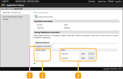 เปิดหน้า [Register New Button] ในหน้านี้ คุณสามารถปรับความเข้มและสมดุลสี และชื่อปุ่มที่จะแสดงบนหน้าจอ Home