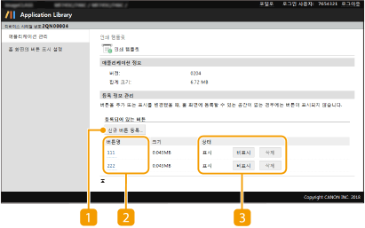 홈 화면에 버튼을 표시하거나 숨깁니다. 버튼을 삭제하려면, 먼저 버튼을 숨김으로 설정한 다음 [삭제]을 클릭합니다.