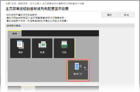 可以使用远程用户界面重新排列 [主页] 屏幕上的按钮和将按钮移至其他选项卡。