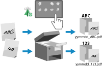 可以使用 [命名并扫描],根据您指定的规则指定扫描数据的文件名,然后将数据存储在指定文件夹中。 根据指定规则发送和保存扫描数据 | ![]() |