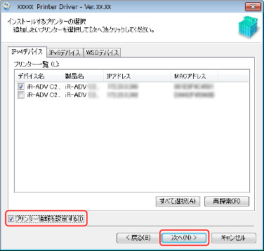 ネットワーク上にあるデバイスを自動検索して、ドライバーをインストール([標準セットアップ])する手順を説明します。