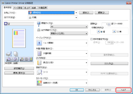 ドライバーの使用方法や各機能の詳細については、ヘルプを参照してください。