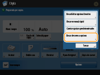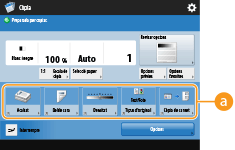 Els botons d'opcions que apareixen a les pantalles de funcions bàsiques (de còpia, fax i lectura) es poden canviar per altres botons d'opcions a <Opcions>. Si col·loqueu botons d'opcions utilitzades freqüentment a la pantalla de funcions bàsiques, podreu utilitzar les funcions amb més eficiència. A més, si inicieu sessió amb la gestió d'autenticació personal, podeu mostrar una pantalla de funcions bàsiques diferent que estigui personalitzada per a cada usuari.