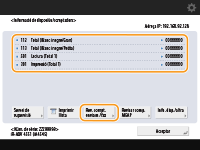 En aquesta pantalla podeu comprovar també la informació de comptador per a cada aplicació MEAP. Premeu <Revisar comp. MEAP> a la pantalla durant el pas 2. Si premeu <Info. disp./altra> <Revisar conf. de dispositiu> a la mateixa pantalla, podeu comprovar les opcions instal·lades a l'equip i la versió del xip de seguretat corresponent al xifratge de dades HDD.