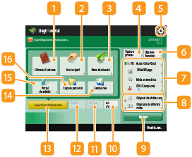 Si el botó per a la funció que voleu utilitzar no apareix, premeu <Opcions> i seleccioneu el botó que preferiu. Funcions bàsiques per llegir originals