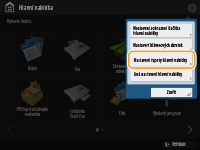 Hlavní nabídka je počáteční obrazovka pro funkce. Přestože je Hlavní nabídka je v době koupě nastavena tak, aby ovládání stroje bylo snadné, můžete si ji nastavit podle svých potřeb, aby lépe vyhovovala vašim každodenním pracovním postupům. Abyste Hlavní nabídka mohli nastavit podle svých požadavků, musíte se přihlásit s právy administrátora (správce).