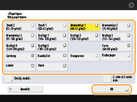 Hvis den ilagte papirtype ikke vises korrekt, skal du trykke på <Detalj. indstil.> for at vælge på en liste.