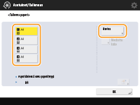 Jos <Muok.> näkyy, vaikka vakiokokoista paperia on lisätty, valitse <Muokattu koko>  <Peruuta asetukset>. Oikea paperikoko on näytössä.