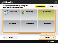 Pikavalinnat perustoimintojen näyttöön <Tulostus>-, <Pito>-, <Skanneri>-, <Faksi/I-faksilokero>- ja <Mobiiliportaali>-toiminnoille