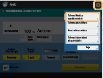 Verkkokopioasetukset, jotka on tallennettu kohtaan <Edelliset asetukset> tai <Suosikkiasetukset>, muuttuvat paikallistulostuksen asetuksiksi, kun tämä laite tai verkkokopiotulostin käynnistetään uudelleen. Jos haluat hakea <Edelliset asetukset> ja suorittaa verkkokopioinnin, kytke tulostimen virta ja päivitä verkkokopiotulostimen tiedot sen jälkeen, kun kohdassa <Kytkemisen odotusaikaa käynnistettäessä> asetettu aika on kulunut. <Etäkopioinnin lähetyksen aikakatkaisu>