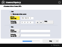 Naciśnij na <Główny Serwer DNS> oraz <Podrzędny Serwer DNS>, wprowadź adres IPv4/IPv6 dla serwera DNS i naciśnij na <Dalej>.