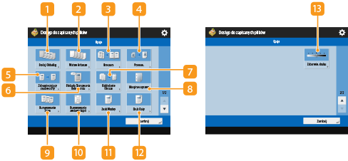 Jeżeli najpierw naciśniesz opcję <Dostęp do zapisanych plików> na ekranie <Główne Menu>, a następnie opcję <Skrzynka pocztowa>, <Zaawansowana przestrzeń>, <Sieć> lub <Nośnik Pamięci>, aby rozpocząć drukowanie plików, wyświetlony zostanie poniższy ekran ustawień.