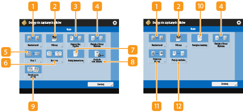 Gdy wybrano różne typy plików (np. PDF i JPEG) jednocześnie, można ustawić/zmienić tylko poniższe funkcje.